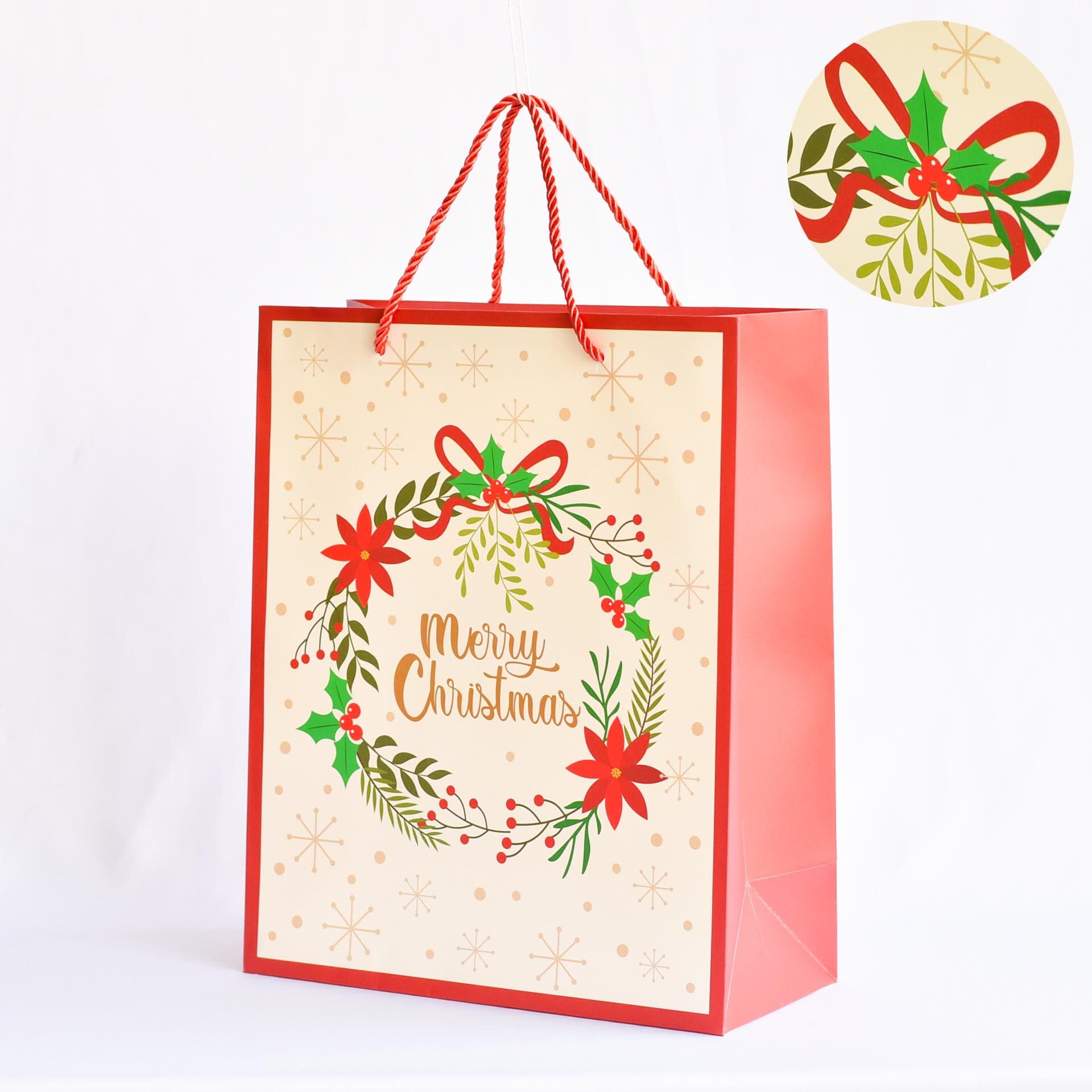 La Bolsa de Regalo de 32x26 cm, está fabricada en papel Kraft, ideal para envolver y presentar tus regalos navideños con practicidad y estilo. Su tamaño versátil se adapta a diversas formas y tamaños de obsequios, facilitando una presentación limpia y atractiva que protege su contenido durante la temporada festiva. Perfecta para quienes buscan combinar funcionalidad y comodidad en el embalaje de sus regalos de Navidad.