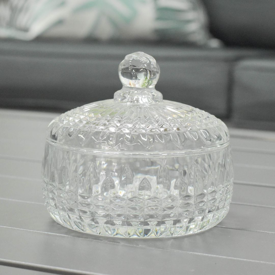 Esta confitera de 11x11 cm en color transparente aporta un estilo único y elegante para cualquier espacio. Su diseño la convierte en un elemento ideal para decorar, aportando un toque distintivo y sofisticado a su ambiente. Perfecta para exhibir dulces o pequeños objetos decorativos con estilo.