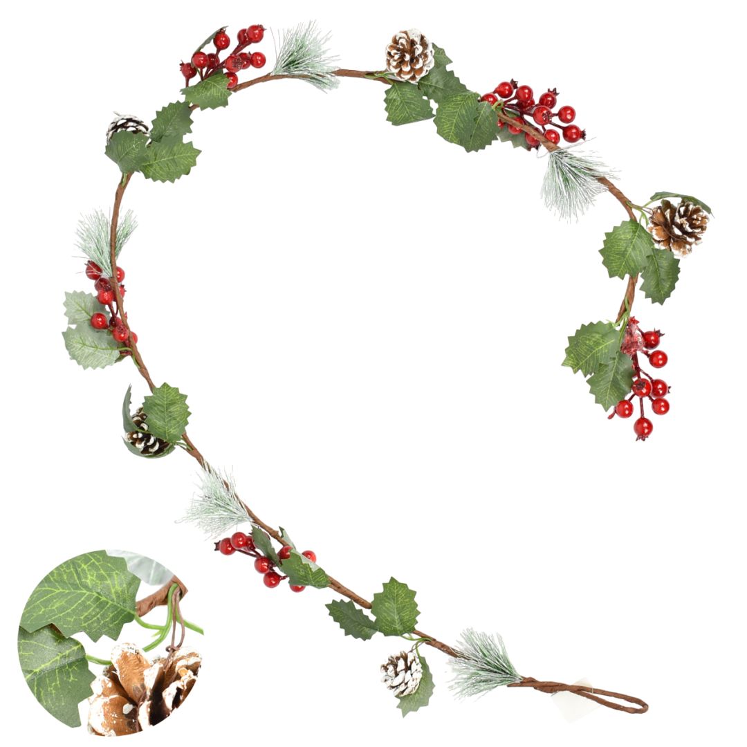 Esta guirnalda navideña de 1.4 metros de largo y 8 centímetros de ancho aporta un toque festivo y agradable a cualquier espacio. Su diseño compacto facilita la decoración de hogares, oficinas o locales comerciales, creando un ambiente cálido propio de la temporada. Perfecta para resaltar áreas específicas sin ocupar mucho espacio, es una opción práctica y elegante para destacar la decoración navideña.