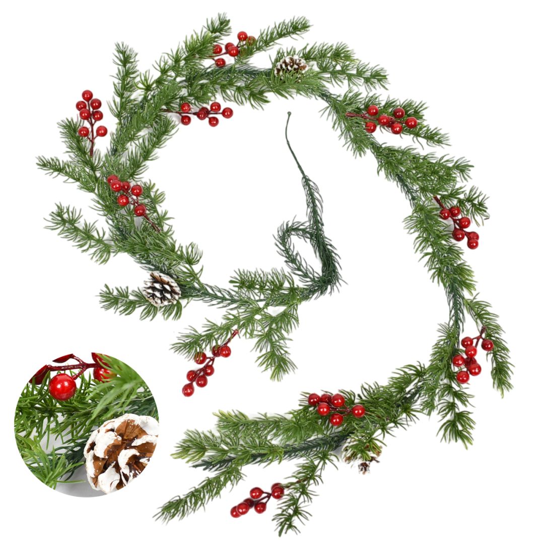 Esta guirnalda navideña de 1.5 metros de largo y 8 centímetros de ancho aporta un toque festivo y agradable a cualquier espacio. Su diseño compacto facilita la decoración de hogares, oficinas o locales comerciales, creando un ambiente cálido propio de la temporada. Perfecta para resaltar áreas específicas sin ocupar mucho espacio, es una opción práctica y elegante para destacar la decoración navideña.