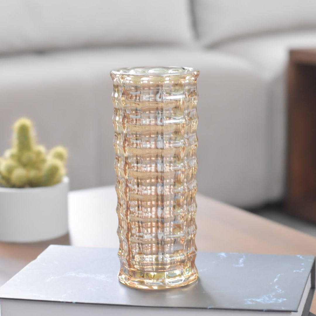 Jarrón en cristal ámbar con un diseño elegante y sofisticado que transforma cualquier espacio en un ambiente refinado. Sus dimensiones de 19x9 cm lo hacen perfecto para exhibir flores frescas o como pieza decorativa independiente. La tonalidad ámbar cálida añade carácter y luminosidad a salas, comedores y recámaras. Una opción versátil para quienes buscan decoración de calidad que combine funcionalidad y estética.