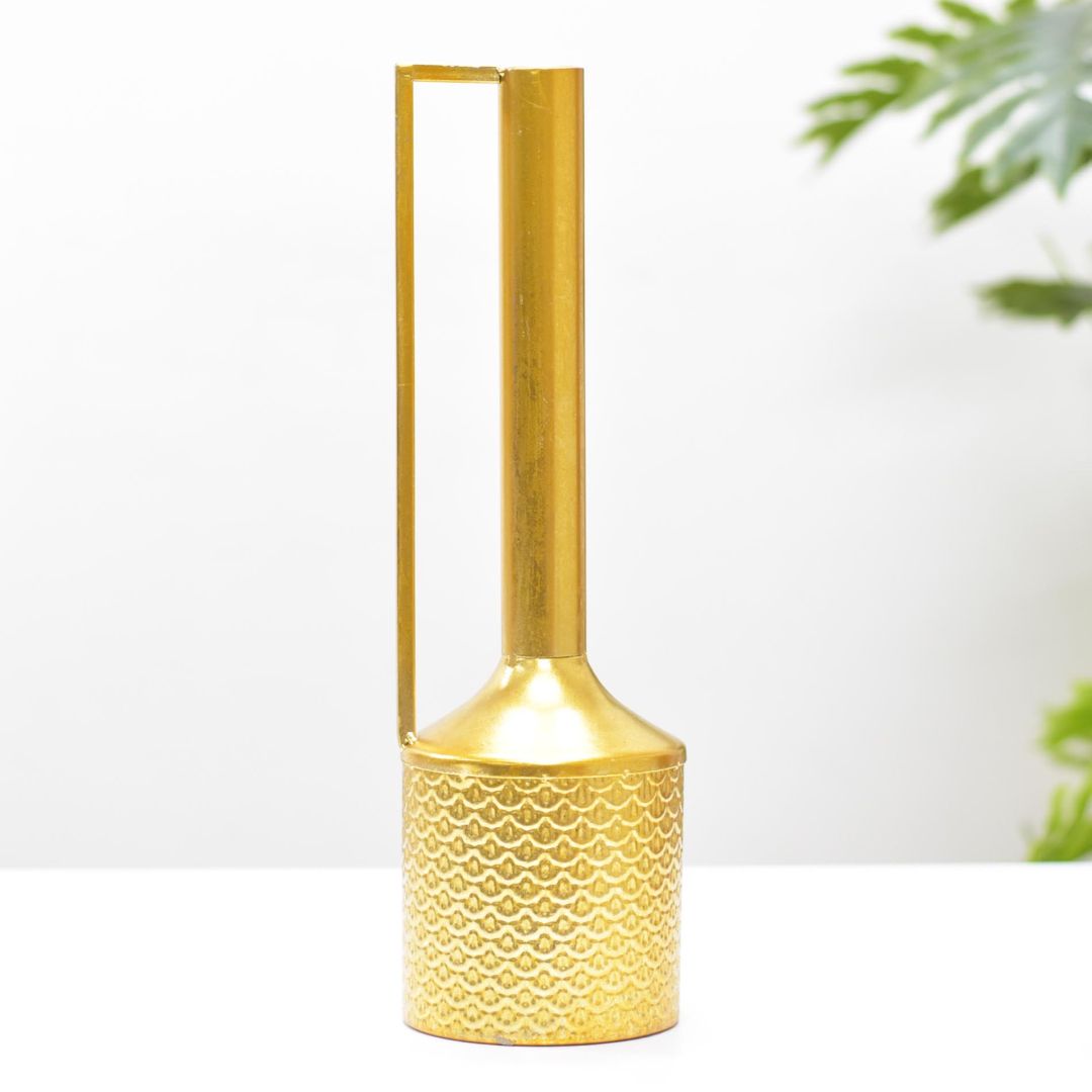 Este jarrón de aluminio dorado, con dimensiones de 43x13 cm, ofrece una combinación perfecta de estilo y funcionalidad para la decoración de interiores. Su acabado metálico aporta un brillo sofisticado que realza cualquier espacio, mientras que el aluminio asegura ligereza y resistencia. Ideal para quienes buscan una pieza decorativa duradera y elegante que complemente ambientes modernos y clásicos.