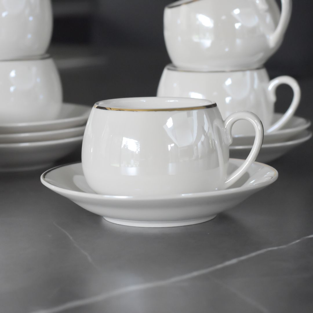 Juego de té completo de 6 piezas, ideal para compartir momentos especiales en familia o con amigos. Cada taza tiene una capacidad de 200 ml y viene acompañada de su propio portavaso, proporcionando comodidad y elegancia en cada sorbo. Perfecto para servir té caliente o bebidas frías con estilo y practicidad.