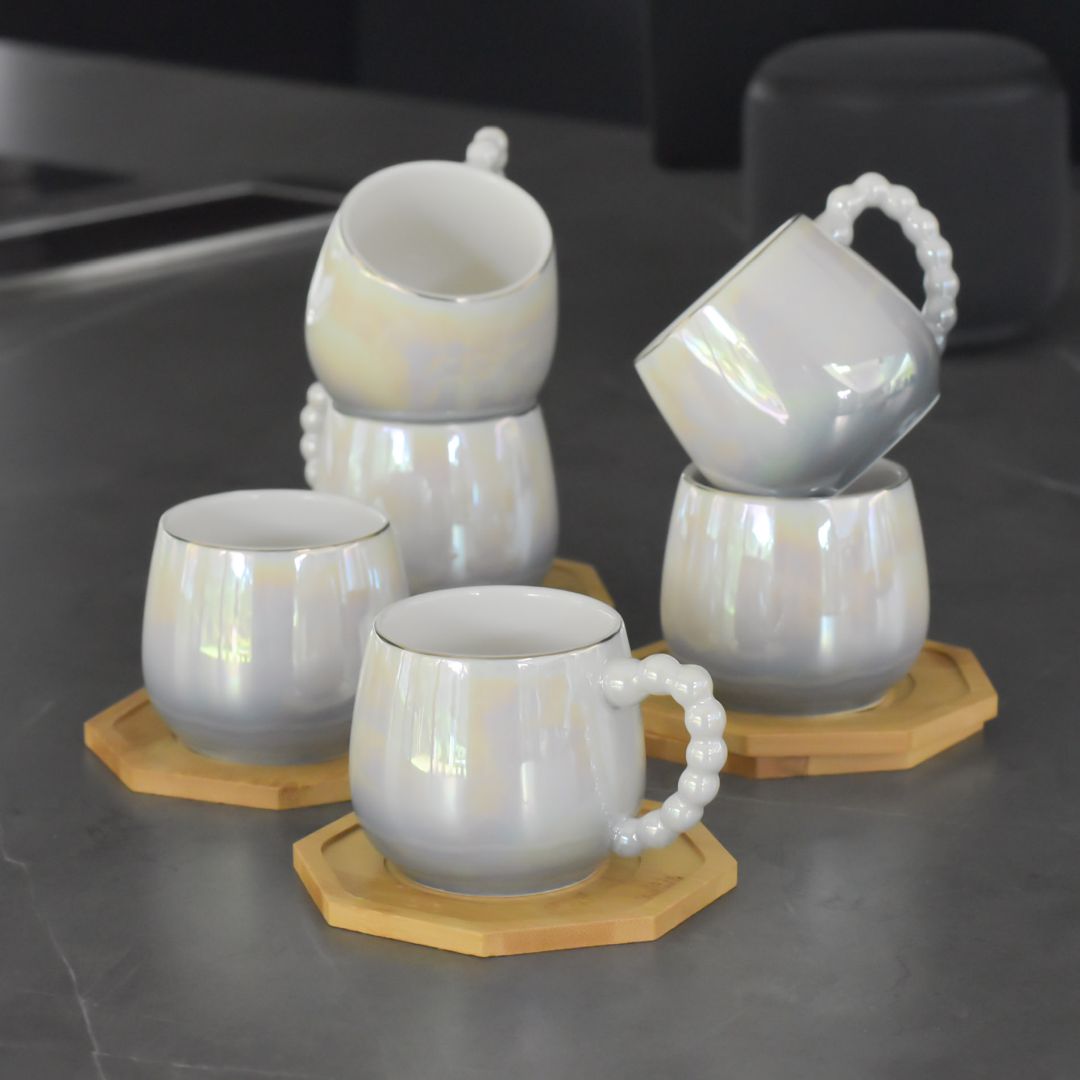Juego de té completo de 6 piezas, ideal para compartir momentos especiales en familia o con amigos. Cada taza tiene una capacidad de 250 ml y viene acompañada de su propio portavaso, proporcionando comodidad y elegancia en cada sorbo. Perfecto para servir té caliente o bebidas frías con estilo y practicidad.