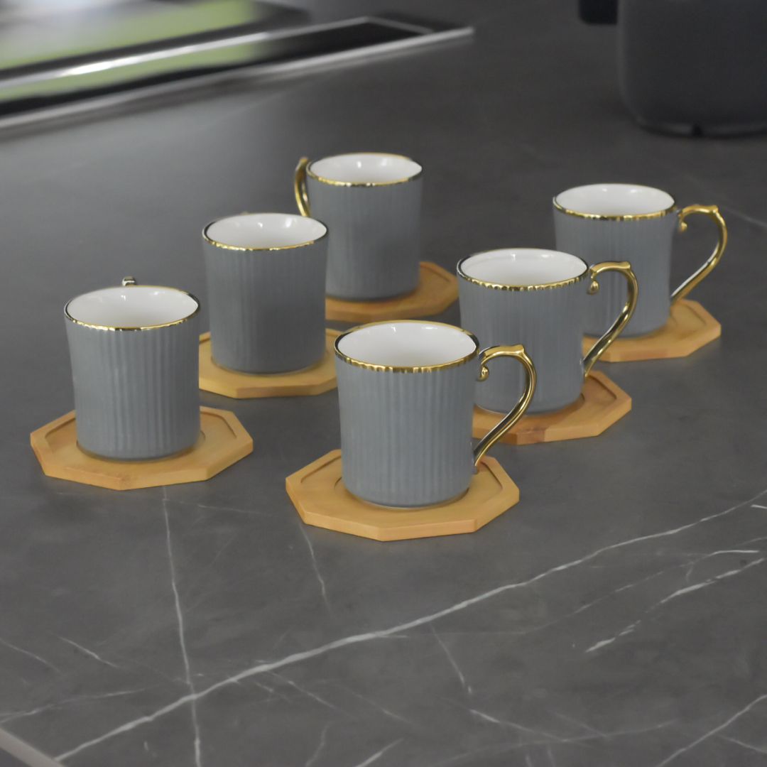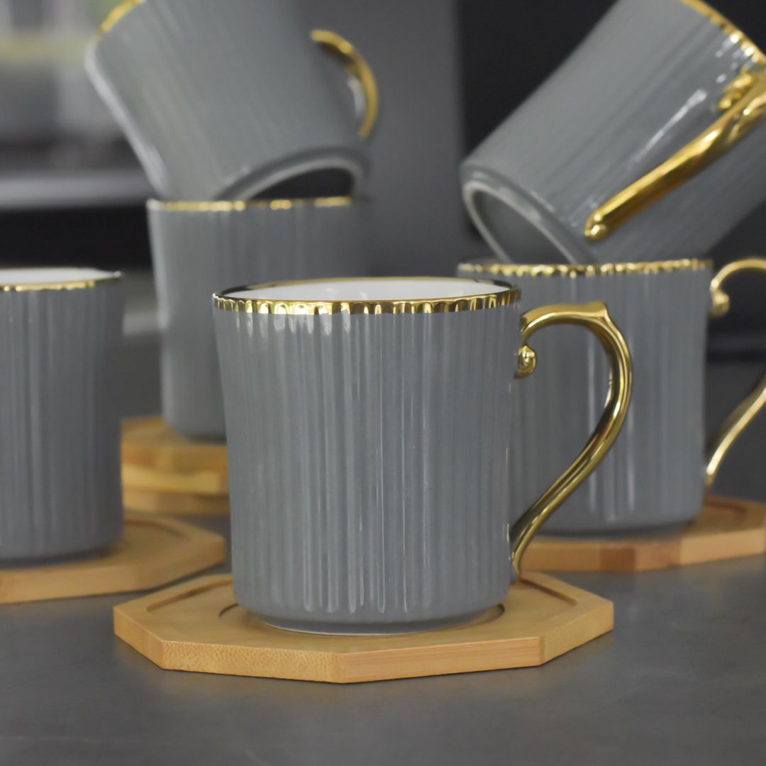 Juego de té completo de 6 piezas, ideal para compartir momentos especiales en familia o con amigos. Cada taza tiene una capacidad de 270 ml y viene acompañada de su propio portavaso, proporcionando comodidad y elegancia en cada sorbo. Perfecto para servir té caliente o bebidas frías con estilo y practicidad.