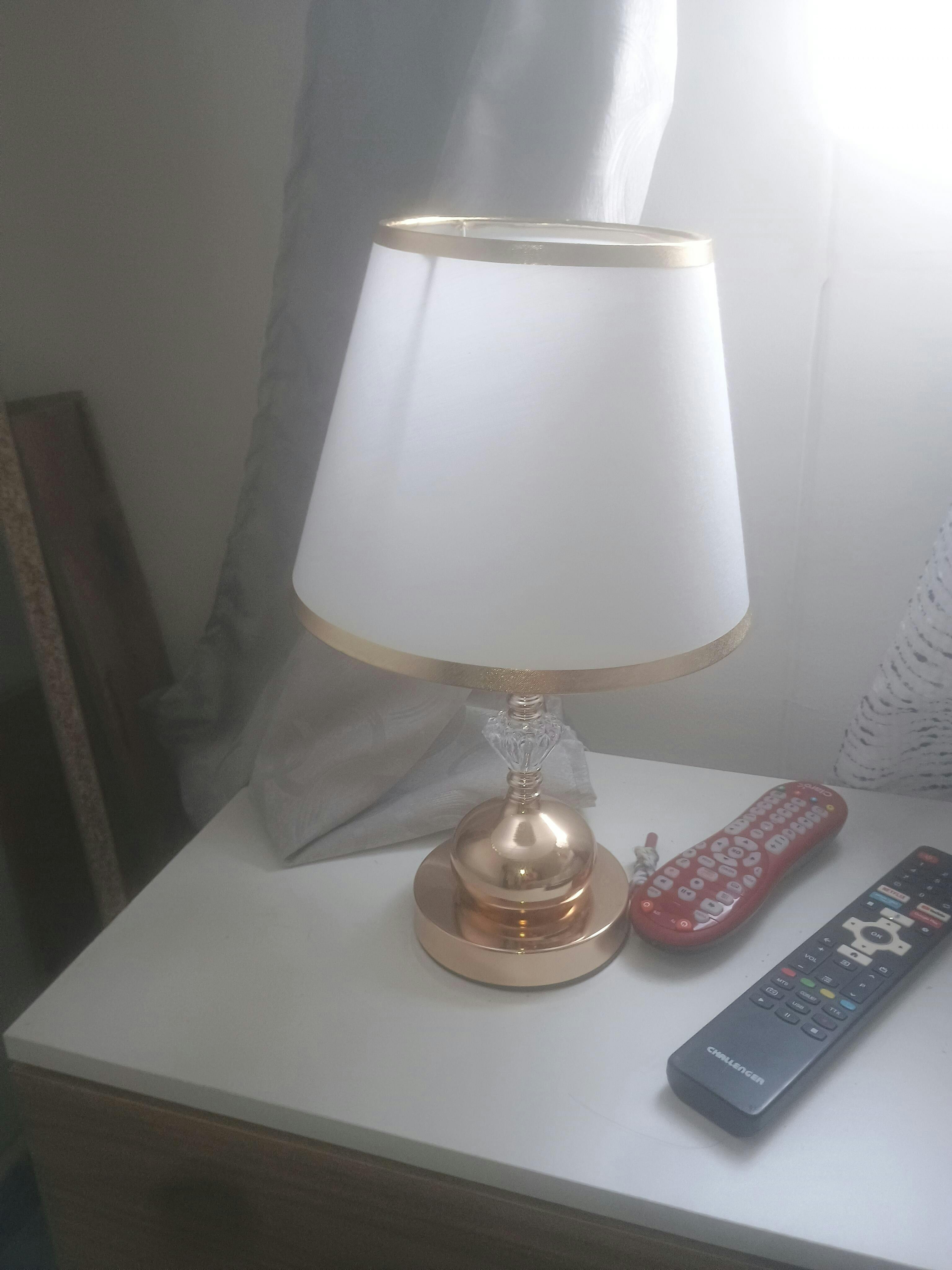 Esta lámpara con caperuza de 36x25 cm está elaborada en electro plata, combinando un acabado dorado con detalles en blanco que aportan un estilo elegante y contemporáneo. Su diseño experto ofrece una iluminación focalizada, ideal para realzar la decoración de cualquier espacio con un toque sofisticado y moderno.
