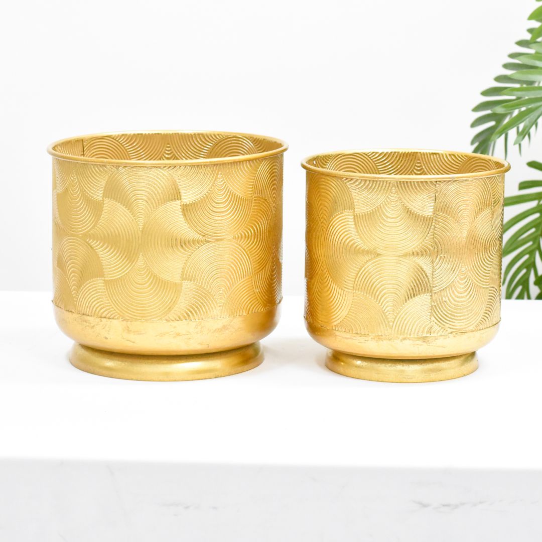 Este set de 2 macetas de 25x22 cm, fabricadas en latón, es perfecto para exhibir tus plantas favoritas y transformar cualquier espacio con un toque sofisticado. Su material garantiza durabilidad y un acabado elegante, ideal tanto para interiores como para exteriores. Con estas macetas, lograrás una decoración armoniosa y resistente que realza la belleza natural de tus plantas.