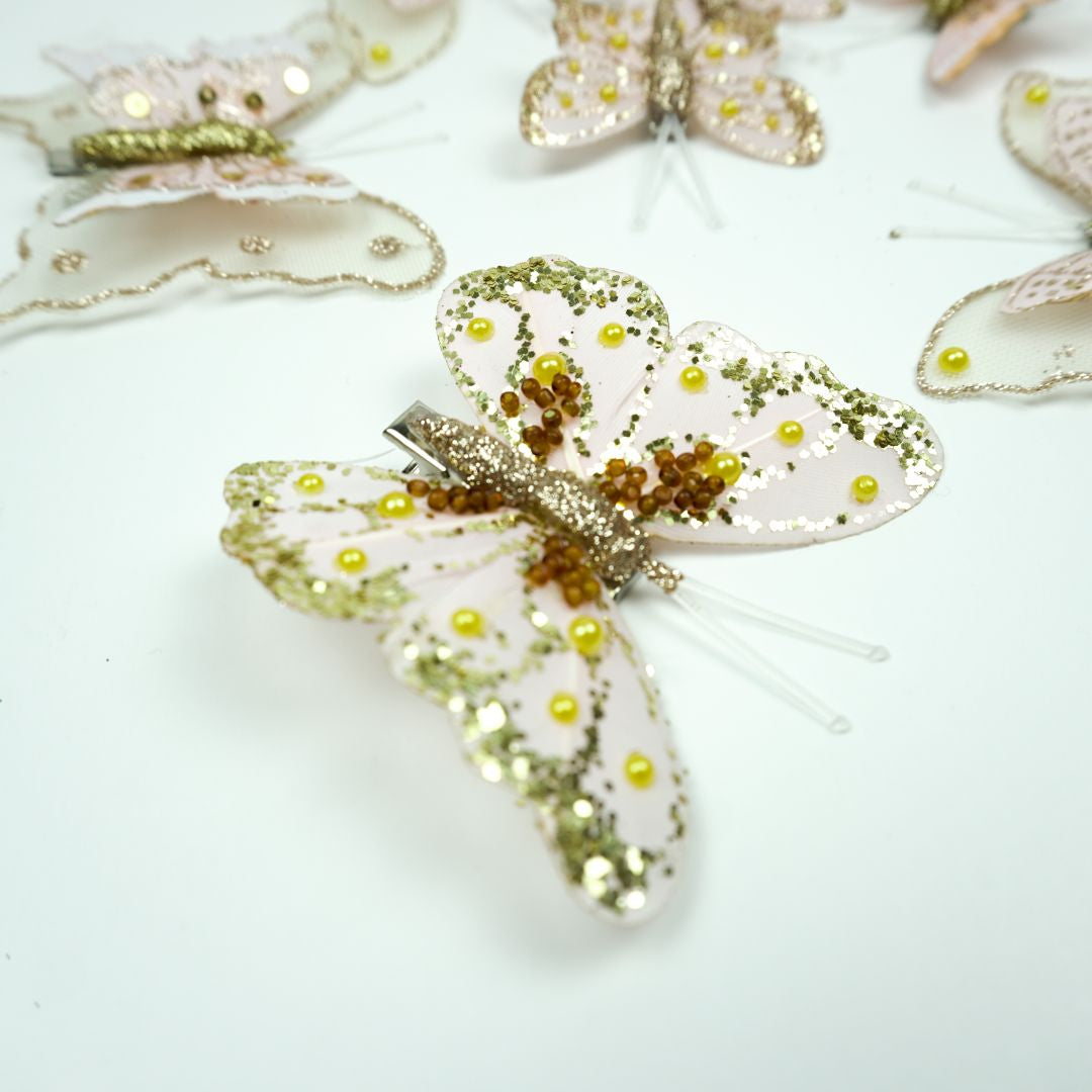 Este set incluye 10 mariposas artificiales de 8 cm, perfectas para añadir un toque elegante y natural a cualquier espacio. Su diseño detallado las hace ideales para decorar ambientes cotidianos o para realzar la decoración navideña, aportando color y sofisticación sin esfuerzo. Son versátiles y fáciles de colocar, brindando un acabado profesional a tus proyectos decorativos.