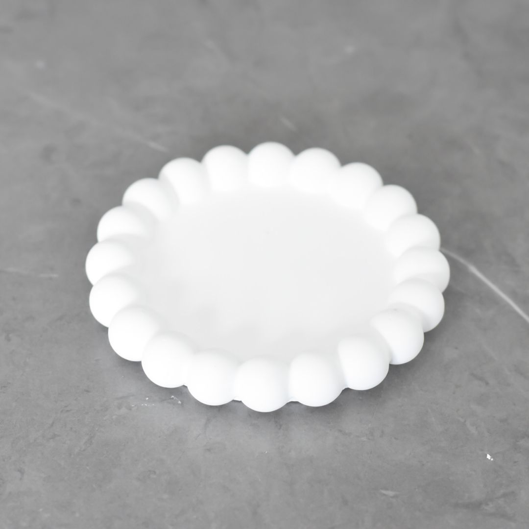 Plato decorativo de yeso en color blanco, diseño elegante y versátil de 12x12 cm. Perfecto para complementar tu decoración interior, ya sea en estantes o mesas. Su acabado en yeso proporciona una textura natural y sofisticada. Ideal para crear ambientes minimalistas y contemporáneos.