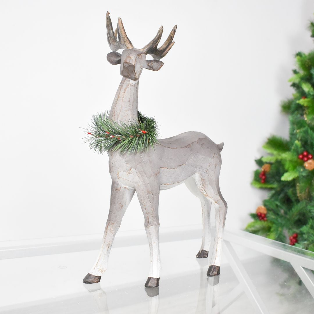 Este reno navideño de 41x28 cm, elaborado en poli resina , es perfecto para aportar un toque elegante a tu decoración navideña. Su diseño detallado y su tamaño ideal permiten integrarlo fácilmente en cualquier ambiente, creando un ambiente cálido y sofisticado durante las navidades. Un complemento duradero y versátil para realzar tu espacio en esta temporada navideña.