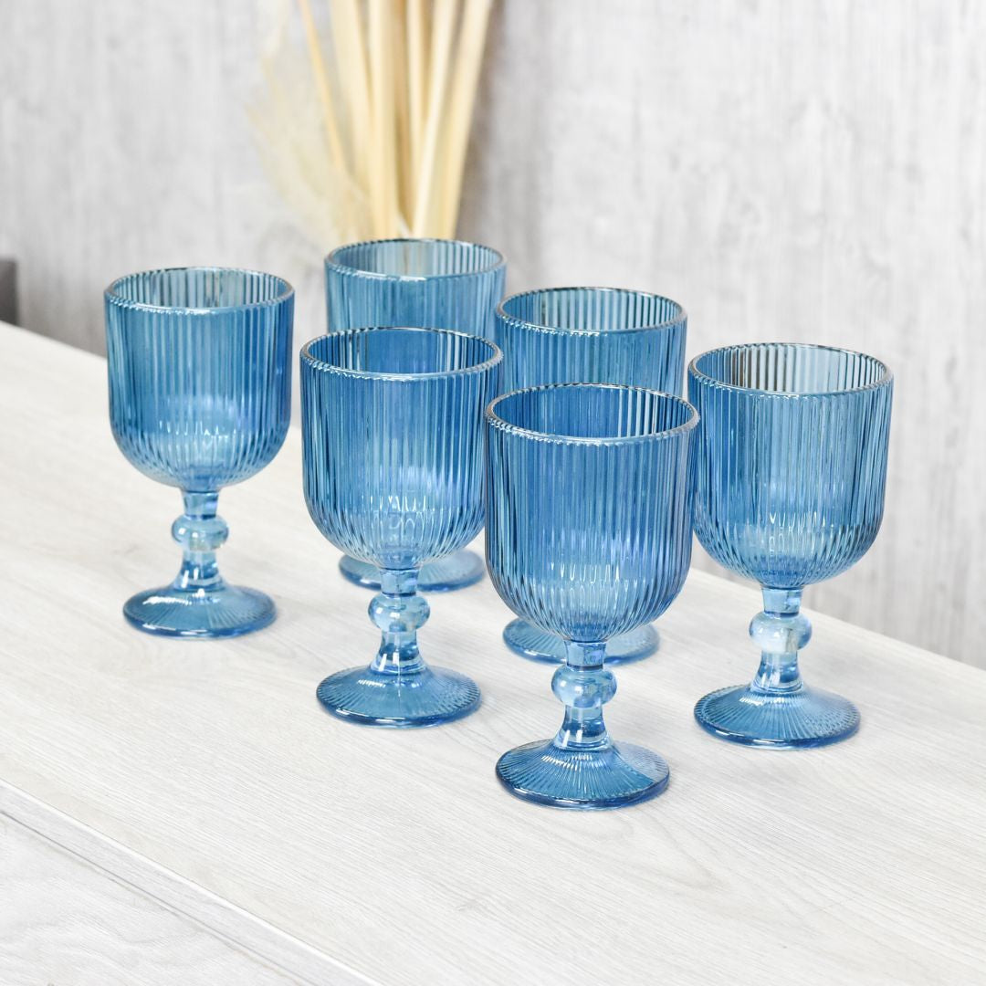 Este set de 6 copas de vidrio es perfecto para quienes aman sorprender con estilo. Su diseño con textura estriada y pie decorativo aporta un aire vintage y sofisticado que realza cualquier mesa, ya sea en una cena especial o en el día a día.